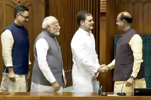PM Narendra Modi and Leader of the Opposition in Lower House Rahul Gandhi took him to the chair and congratulated him after Birla assumed the post.