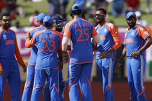 June 28 (IANS) Captain Rohit Sharma slammed his 32nd T20I fifty through a 39-ball 57, while Kuldeep Yadav and Axar Patel picked three wickets each as India stormed into the 2024 Men’s T20 World Cup final after outclassing defending champions England by 68 runs in the second semifinal at the Providence Stadium. On a tricky pitch with a slow pace and low bounce, Rohit adjusted well to mix risk-taking and caution to smash six fours and two sixes in his vital knock, while sharing a 73-run stand with Suryakumar Yadav, who slammed 47 off 36 balls. Handy runs from Hardik Pandya, Ravindra Jadeja and Axar Patel at the fag end helped India post a competitive 171/7 after being inserted into bat first. In reply, brilliant spells by Axar and Kuldeep led to England falling in a heap as they were bowled out for 103. The commanding win will now see India take on South Africa in the final at Kensington Oval in Bridgetown, Barbados, on Saturday. Moreover, for the first time in the history of the competition, the Men's T20 World Cup will have an unbeaten team as champion. After 75 minutes of rain interruption, Rohit began by getting two streaky boundaries, while Virat Kohli was convincing in his flicked six off Reece Topley. But in a bid to heave Topley across the line, Kohli didn’t account for the length ball shaping back in and saw his bails being rattled. Despite Rohit not getting the desired timing on his shots, he managed to pull Topley for four and then stayed leg-side to drive the pacer stylishly for another boundary. But England took out Rishabh Pant, as he flicked straight to mid-wicket off Sam Curran. Suryakumar opened his account with a straight drive past Curran for four, as India ended the Power-play at 46/2. Rohit welcomed Rashid with a reverse sweep and the conventional sweep fetching him two boundaries, followed by Suryakumar getting down on one knee to heave a slower ball from Jordan over long-leg for six. Just before the ninth over began, rain began to pour heavily and forced everyone to get off the field for 75 minutes. After resumption, Suryakumar began by sweeping Rashid for four, followed by Rohit launching Livingstone for a massive six over long-on. Rohit brought up his fifty in 36 balls by sweeping Curran for six, while Suryakumar lofted inside-out and pulled to take two boundaries off him as 19 runs came off the 13th over. Post that, England bounced back as Rashid’s googly kept low and went past Rohit’s heave to castle him for 57. Archer’s return in the 16th over worked well when Suryakumar skied a back-of-the-hand slower ball to long-on. Pandya cut Archer for four, before hitting back-to-back sixes off Jordan. But the pacer had the last laugh as Pandya smashed his slower delivery to long-off, followed by Shivam Dube nicking behind for a golden duck to make a double strike in the 18th over. Jadeja’s two boundaries off Archer, followed by Patel pulling Jordan for six ensured India crossed the 170-run mark. Chasing 172, Jos Buttler hit four boundaries, including three off Arshdeep, to give England a strong start with 26 runs coming in the first three overs. But Axar and Jasprit Bumrah joined forces to leave England in tatters. On Axar’s first ball, Buttler looked to reverse-sweep but gave a top edge to keeper Rishabh Pant. Bumrah brought out his off-cutter to disturb Phil Salt’s leg-stump, followed by Axar getting one to stay low and hit Jonny Bairstow’s off-stump to dismiss him for a duck, as England ended the Power-play at 39/3. Things went from bad to worse for England as Moeen Ali tried to flick off Axar, but the ball lobbed off his thigh pad, and as he wandered out of the crease, Pant collected the ball to stump him quickly. Kuldeep pushed England further on backfoot by trapping Sam Curran plumb lbw in front of the middle stump, ratting a reverse-sweeping Harry Brook’s leg-stump and got one to spin back in to trap Chris Jordan lbw. Mix-ups resulted in runouts of Liam Livingstone and Adil Rashid, and when Bumrah trapped Jofra Archer lbw, it triggered jubilant scenes as the ghost of Adelaide 2022 was firmly laid to rest in Guyana 2024, with the dream to win the elusive trophy still on course for a dominating India. Brief scores: India 171/7 in 20 overs (Rohit Sharma 57, Suryakumar Yadav 47; Chris Jordan 3-37, Adil Rashid 1-25) beat England 103 in 16.4 overs (Harry Brook 25; Kuldeep Yadav 3-19, Axar Patel 3-23) by 68 runs --IANS nr/bsk/