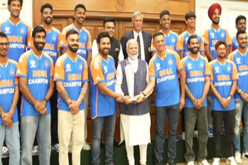 PM Modi hosts World Cup champs New Delhi, July 4 (IANS) Prime Minister Narendra Modi hosted the T20 World Cup-winning Indian cricket team in his 7 Lok Kalyan Marg residence, here on Thursday. PM Modi interacted with each member of the team and congratulated them for their stunning victory. PM Modi was handed the trophy by Rohit Sharma and the entire team posed for the photo. BCCI president Roger Binny and secretary Jay Shah were also present on the occasion. The Men in Blue will now return to the airport to board a special flight to Mumbai. After reaching Mumbai airport, the team will move to the Wankhede Stadium. The BCCI has arranged for a 1 km victory parade from Nariman Point to Wankhede followed by a small ceremony at Wankhede Stadium. It is at the iconic venue in Mumbai where BCCI secretary Jay Shah, who was present in Barbados for the final against South Africa on Saturday, will distribute the Rs 125 crore cash prize to the Indian team for winning their first ICC trophy in over a decade. The Men in Blue were supposed to depart Barbados for New York on Monday morning before taking a connecting flight from Dubai for India a couple of days after winning the T20 World Cup for a second time. However, the Indian cricketers were stuck on the island for three days due to Hurricane Beryl which swept through the Caribbean, and were only able to fly out of Barbados in the early hours of Wednesday via a charter flight named AIC24WC — Air India Champions 24 World Cup. --IANS bc/cs