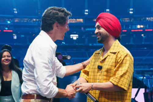 Sharing a picture on his X handle, the Canadian PM wrote, “Stopped by Rogers Centre to wish Diljit Dosanjh good luck before his show.”