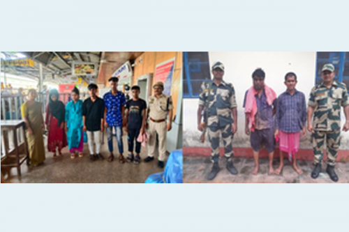 In Tripura, Border Security Force (BSF) personnel and GRP staff arrested two Bangladeshi nationals and two Indian touts from Sepahijala and West Tripura districts.
