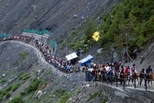 The Pahalgam-Cave shrine axis is 48 Km long and takes Yatris 4-5 days to reach the shrine. The Baltal-Cave shrine axis is 14 Km long and takes one day for the pilgrims to have ‘darshan’ and return to the base camp.
