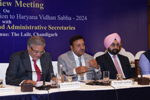 Chandigarh, Aug 13 (IANS) Chief Election Commissioner Rajiv Kumar along with Election Commissioners Gyanesh Kumar and S.S. Sandhu held a two-day comprehensive review of the poll preparedness for the forthcoming Assembly elections in Haryana.