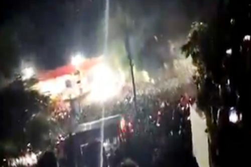 The accident happened when a large number of people crowded onto the balcony of the old building to watch performances, causing it to collapse under the weight.
