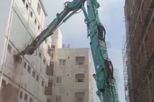 A hospital building and a three-storeyed building were among the structures demolished by the authorities by deploying huge cranes.