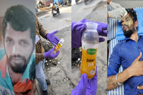 On Sunday noon, when Nagesh was walking towards a liquor shop, he got a call from Laxmi. While he was talking over mobile, an unknown person came from behind and threw the chemical on his face. The accused had fled after the incident.