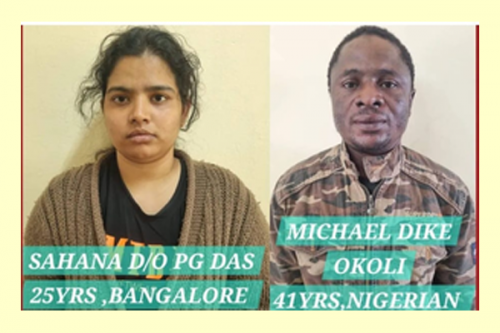 The accused are identified as 41-year-old Michael Dike Okali, a Nigerian national, and his 25-year-old friend Sahana from Bengaluru.