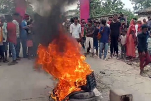 Angry people of Dheng village, under the jurisdiction of the Suppi police station in the district, took to the streets, blocked the road and burnt tyres.