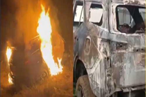 When the locals spotted the car in the blaze, they informed the police and tried to take him out of the Fortuner but were unable to do so, and the man died inside the car.