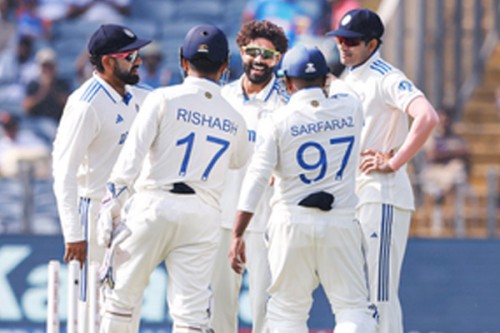 Jadeja then had Mitchell Santner holing out to long-on, before Ashwin had Tim Southee edging to slip. Shortly after, Ajaz Patel holed out in the deep to become Jadeja’s third scalp and despite two sixes from Phillips, William O'Rourke got a little complacent while completing the second run and Jadeja quickly dislodged the bails to catch him short of crease at the bowler’s end to bring New Zealand’s innings to a close.