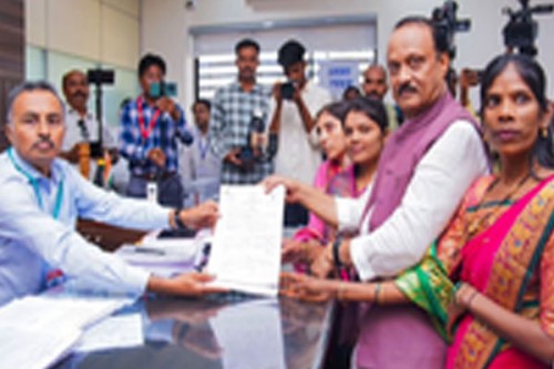 On one side was Nationalist Congress Party (SP) President Sharad Pawar, hand-holding his grand-nephew Yugendra Shrinivas Pawar to file his candidature after leading a long and colourful procession.