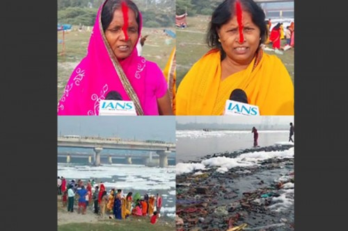 New Delhi, Nov 5 (IANS) As the four-day Chhath festival begins with the traditional 'Nahay Khay' on Tuesday, a disturbing sight marred the religious fervour along the banks of the Yamuna River near Kalindi Kunj in Delhi.