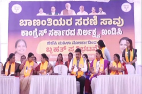 Belagavi (Karnataka), Dec 16 (IANS) Karnataka BJP Mahila Morcha staged a protest condemning the series of maternal deaths across the state near the Suvarna Vidhana Soudha in Belagavi on Monday.