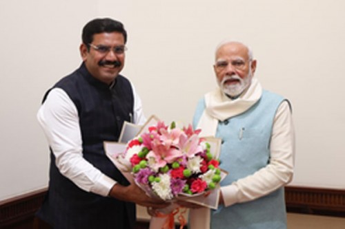 Bengaluru, Dec 18 (IANS) Amid rumours of change in leadership, Karnataka BJP President B.Y. Vijayendra met Prime Minister Narendra Modi on Wednesday at his office in New Delhi and sought his blessings on the occasion of completion of one term in office.