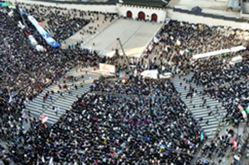 Police estimated 35,000 people took part in anti-Yoon rallies near Gyeongbok Palace as of 5.10 p.m., though organizers put the number at over 500,000.