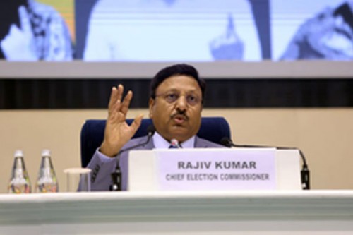 Chief Election Commissioner of India, Rajiv Kumar, Election Commissioners of India, Gyanesh Kumar and Dr Sukhbir Singh Sandhu addressed the press conference held in the Plenary Hall of the Vigyan Bhawan in the national capital.