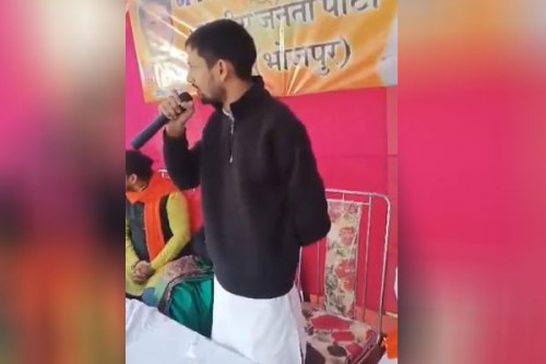 The video, reportedly recorded during the inauguration of the Jan Samasya Nivaran Kendra (Public Grievance Redressal Centre) in Bhojpur district on Thursday, has triggered widespread criticism on social media.