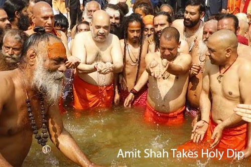 Amit Shah’s holy dip in Sangam comes days after the entire UP cabinet led by CM Yogi Adityanath took a holy dip at the Sangam.