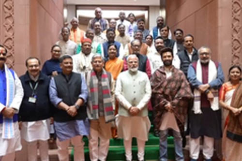 Patna, Feb 7 (IANS) Thirty NDA MPs from Bihar met with Prime Minister Narendra Modi in New Delhi on Friday and gifted him traditional items of the state while thanking him for the enhanced budget allocation.
