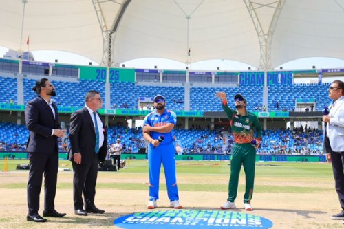 Dubai, Feb 20 (IANS) India have brought in Ravindra Jadeja and Mohammed Shami as Bangladesh captain Najmul Hossain Shanto won the toss and elected to bat first in their first Group A match of the 2025 ICC Champions Trophy at the Dubai International Stadium on Thursday.