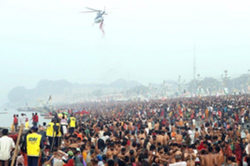 Mahakumbh Nagar, Feb 26 (IANS) On the auspicious occasion of Maha Shivratri, 20 quintals of rose petals were showered on millions of devotees at the Maha Kumbh 2025 on Wednesday, as they gathered at the Sangam in Prayagraj to take part in the final holy dip of the ongoing religious festival.
