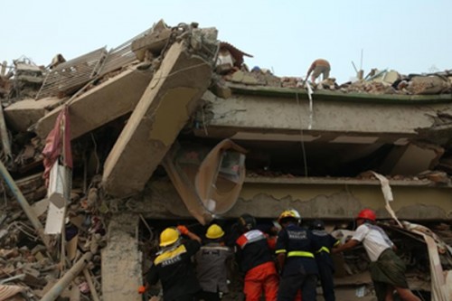 Two people were trapped under the debris, and rescue teams from the Myanmar Fire Services Department and Turkey successfully pulled one survivor to safety, the information team said.