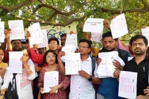 The protesters are demanding that the state government and the commission segregate the "genuine" candidates from the "tainted" ones who secured jobs against money.