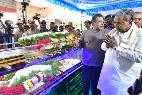Bengaluru, April 24 (IANS) Karnataka Chief Minister Siddaramaiah on Thursday visited the residence of 35-year-old Bharat Bhushan, in Mathikere, Bengaluru, who was shot dead in front of his family by terrorists in Pahalgam and paid his final respects.