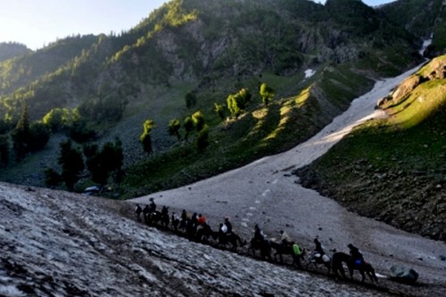 Devotees believe that the ice stalagmite structure symbolises the mythical powers of Lord Shiva. They approach the cave shrine either from the traditional longer Pahalgam route in Anantnag district or the shorter Baltal route in Ganderbal district.