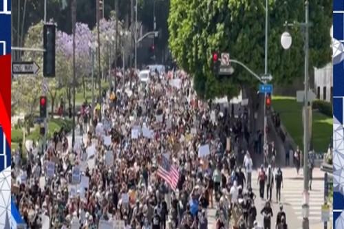 Los Angeles, June 9 (IANS) More than 200 protesters clashed with National Guard troops in downtown Los Angeles during the latest demonstrations against immigration raids that swept across California over the weekend.