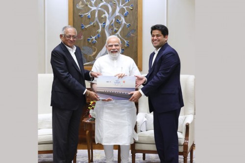 During the meeting, they presented the Prime Minister with the TVSM x Rann Utsav 2025 Coffee Table Book, which showcases the beauty of Kutch and the synergy between motorsports and regional tourism.