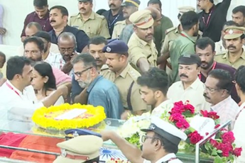 On Tuesday morning, the body of former Chief Minister VS, as he is popularly known, was taken from his son’s house here to the palatial Durbar Hall in the heart of the State Secretariat -- the seat of the government which he headed from 2006 to 2011.