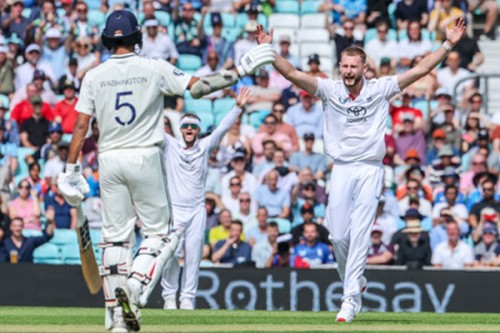 Two balls later, Atkinson completed a richly-deserving five-for by forcing Prasidh Krishna to nick an out-swinger behind to wicketkeeper Jamie Smith. Atkinson’s haul of 5-33 was all the more significant after Chris Woakes’s left shoulder injury sustained while fielding on day one’s play meant he won’t be taking any further part in the match.