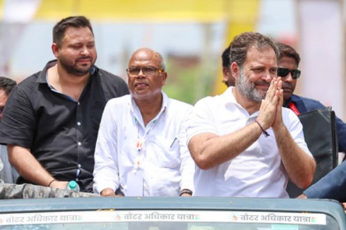 Tejashwi and Rahul, having launched ‘Voter Adhikar Yatra’ from Bihar’s Sasaram, are set to tour 1300 km in the state to win public support ahead of the Assembly elections. The bonhomie between the two leaders is also apparent, with Tejashwi in the driver’s seat while the Congress MP gives him company. In one of the viral pictures from the rally, Tejashwi was seen driving a jeep while Rahul was waving to the crowd from the ‘passenger' seat.