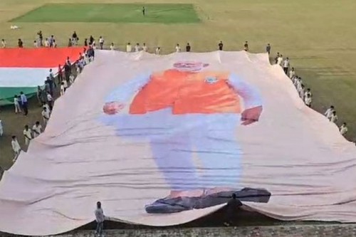 The poster, created by local artist Praveen Gupta, was painted on fabric and took over 10 days to finish. Weighing around 250 kg, it needed 54 people to unfold it. Alongside the artwork, a 30x20 ft Indian flag was hoisted. The flag will also remain on display during the upcoming India-Sri Lanka women’s cricket tournament at the same venue.