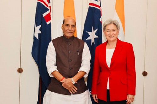 Canberra, Oct 9 (IANS) Defence Minister Rajnath Singh and Australia's Minister for Foreign Affairs Penny Wong held a meeting in Canberra on Thursday and discussed ways to strengthen growing Comprehensive Strategic Partnership. Penny Wong called India and Australia joint custodians of the Indian Ocean.