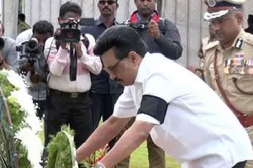 At the ceremony, Chief Minister Stalin laid a wreath at the memorial to pay his respects to the fallen heroes.