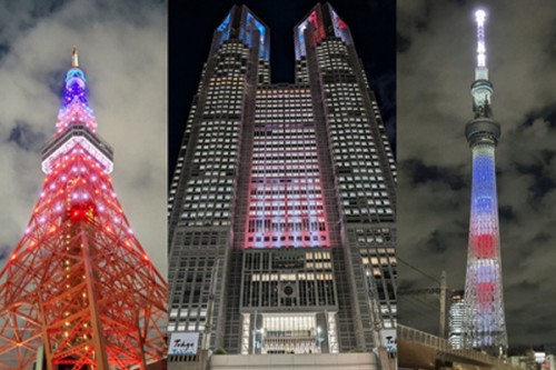 Japan's landmark buildings, including Tokyo Skytree, Tokyo Tower and Tokyo Metropolitan Government Building, welcomed Trump to Japan by special lighting inspired by the star-spangled banner.