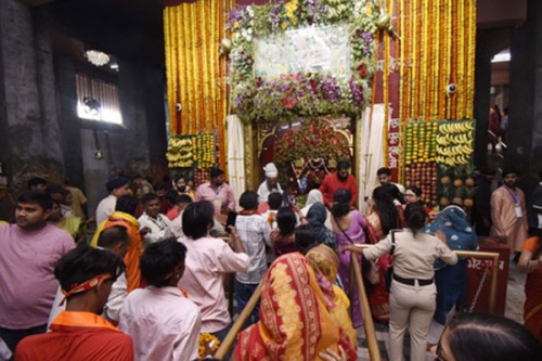 Adding to the grandeur, the temple has been beautifully decorated with flowers brought from Kolkata and elaborate lighting arrangements.