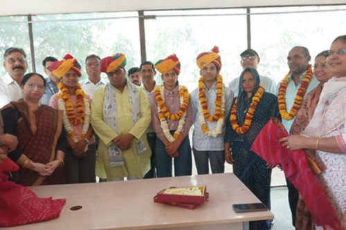 The three students met Minister Madan Dilawar at his official residence in Jaipur, where he congratulated them and extended his best wishes for their future. Praising their achievements, he acknowledged their hard work and determination.