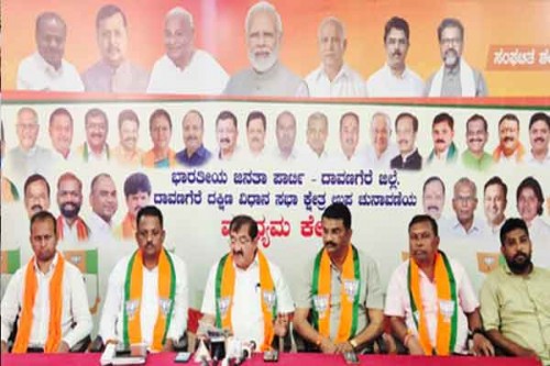 District BJP president Rajashekar Veeresh and party leaders Vijendra, DT Avinash, PS, and Vishwas were present at the press conference.