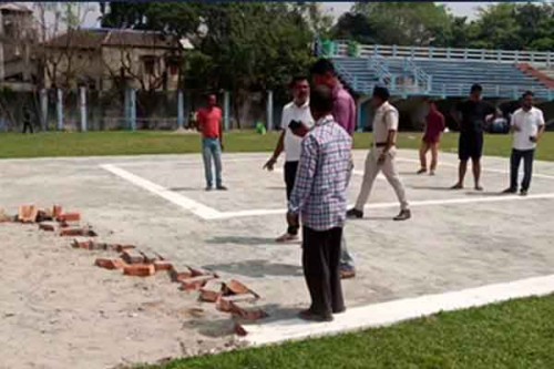 In preparation for his meeting, a helipad was built next to the Raiganj Stadium on Monday. But the allegations are that the concrete helipad was suddenly being demolished. On receiving the news on Monday night, Congress District General Secretary Tushar Guha rushed to the spot.