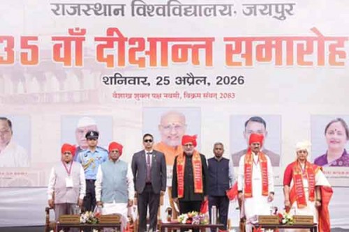 Gracing the programme as the chief guest, the Vice-President described Rajasthan as a land of rich heritage, bravery and cultural depth, noting that Jaipur stands as a symbol of both tradition and progress. He said the university continues to shape generations of thinkers, leaders and change-makers committed to knowledge, integrity and service.