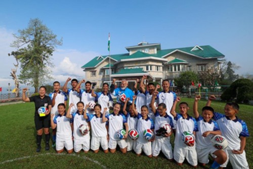 Gangtok, April 28 (IANS) Prime Minister Narendra Modi on Tuesday joined his "young friends" in playing football in Gangtok, Sikkim, calling it a lovely morning and an "energising session".