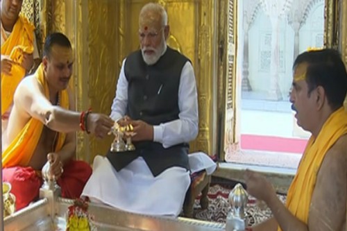 New Delhi, April 29 (IANS) Prime Minister Narendra Modi visited the Shri Kashi Vishwanath Temple in his parliamentary constituency of Varanasi, where he participated in traditional rituals accompanied by Vedic chants on Wednesday.
