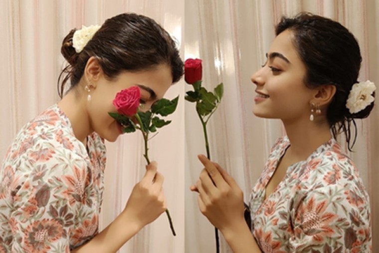 Mumbai, April 20 (IANS) In an act of self-love, actress Rashmika Mandanna bought flowers of herself.