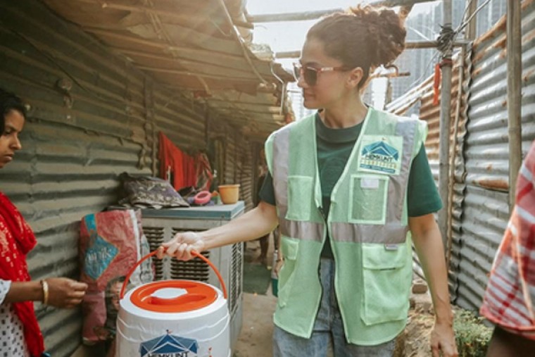 Mumbai, May 14 (IANS) With temperatures soaring, actress Taapsee Pannu stepped in to help the underprivileged by donating insulated water coolers to equip them for the summer season.
