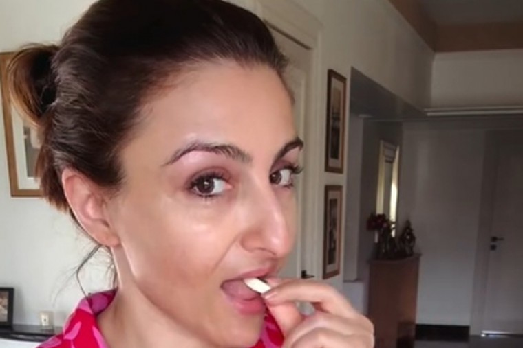 Soha took to Instagram, where she shared a reel video. In the clip, the actress is seen having a clove of garlic.