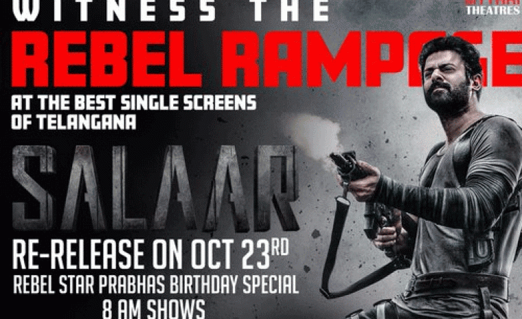 పాన్ ఇండియా స్టార్ హీరో ప్రభాస్ నటించిన 'సాలార్ పార్ట్ 1: సీసెఫైర్ డిసెంబర్ 22, 2023న భారీ బజ్ మధ్య ప్రపంచవ్యాప్తంగా విడుదలైంది. ఈ చిత్రం డిసెంబర్ 2023లో భారతీయ ప్రధాన భాషల్లో విడుదలై సంచలన విజయం సాధించింది. ఈ చిత్రం ఇప్పుడు రీ రిలీజ్ కి సిద్ధంగా ఉంది. ఈ చిత్రం ప్రభాస్ పుట్టినరోజు సందర్భంగా అక్టోబర్ 23, 2025న రీ రిలీజ్ కానుంది. తాజాగా ఇప్పుడు ఈ సినిమాని నైజాం రీజియన్ లో మైత్రి మూవీ డిస్ట్రిబ్యూటర్స్ LLP సొంతం విడుదల చేస్తున్నట్లు సమాచారం. ఈ విషయాన్ని తెలియజేసేందుకు ప్రొడక్షన్ హౌస్ సోషల్ మీడియాలో సరికొత్త పోస్టర్ ని విడుదల చేసింది. ప్రశాంత్ నీల్ దర్శకత్వం వహించిన ఈ చిత్రంలో శృతి హాసన్ మహిళా ప్రధాన పాత్రలో నటించారు. పృథ్వీరాజ్ సుకుమారన్, గోపి, ఈశ్వరి రావు, జగపతి బాబు, శ్రీయ రెడ్డి, బ్రహ్మాజీ, బాబీ సింహ, టిన్ను ఆనంద్ తదితరులు ముఖ్య పాత్రలు పోషిస్తున్నారు. ఈ చిత్రానికి భువన్ గౌడ సినిమాటోగ్రఫీ అందించారు. హోంబలే ఫిలింస్ ఈ సినిమాని నిర్మించింది. ఈ చిత్రానికి రవి బస్రూర్ సంగీతం అందించారు.