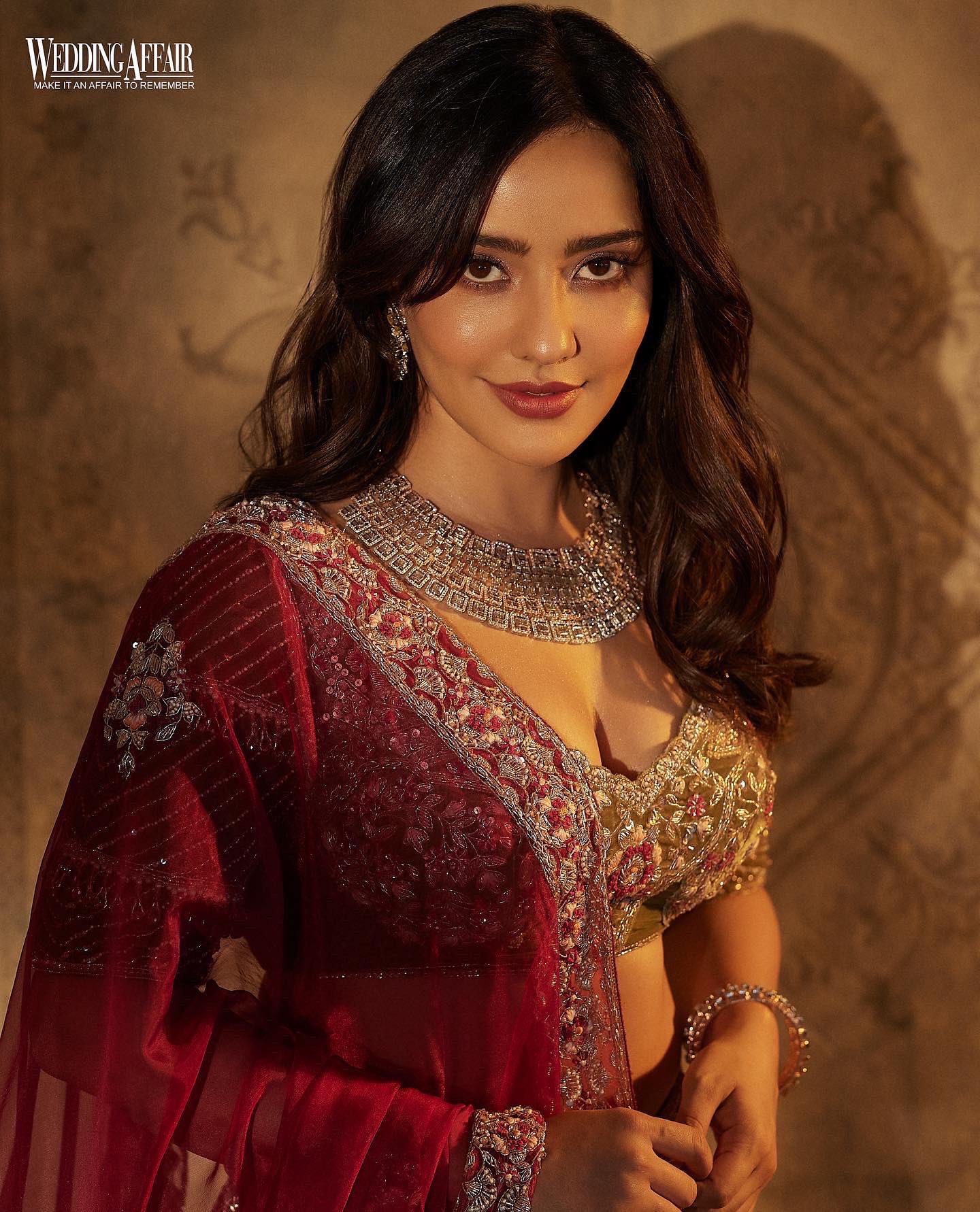 హాట్ బ్యూటీ నేహా శర్మ చిరుత చిత్రంతో టాలీవుడ్ లోకి సెన్సేషనల్ ఎంట్రీ ఇచ్చింది. తొలి చిత్రంలోనే ఆమె చేసిన అందాల మాయకు యువత ఫిదా అయ్యారు. హాట్ బ్యూటీ నేహా శర్మ చిరుత చిత్రంతో టాలీవుడ్ లోకి సెన్సేషనల్ ఎంట్రీ ఇచ్చింది. తొలి చిత్రంలోనే ఆమె చేసిన అందాల మాయకు యువత ఫిదా అయ్యారు. ఇక నేహా శర్మ సోషల్ మీడియాలో గ్లామర్ ఫోజులతో చేసే రచ్చ అంతా ఇంతా కాదు. క్లీవేజ్ షో, నడుము అందాలు, బికినీ ఫోజులతో నేహా శర్మ హాట్ టాపిక్ గా మారుతోంది. తాజాగా నేహా శర్మ అందరి హీరోయిన్ల లాగే దీపావళి ఫోటో షూట్ చేసింది. కాకపోతే నేహా కాస్త వెరైటీగా పెళ్లి కూతురిలా ముస్తాబై 'వెడ్డింగ్ ఎఫైర్' అనే మ్యాగజైన్ కోసం ఫోజులు ఇచ్చింది.